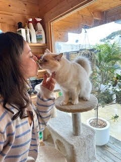 I don’t just feed and clean — I interact! Each cat gets daily cuddles, brushings, and playtime to keep them happy and relaxed.